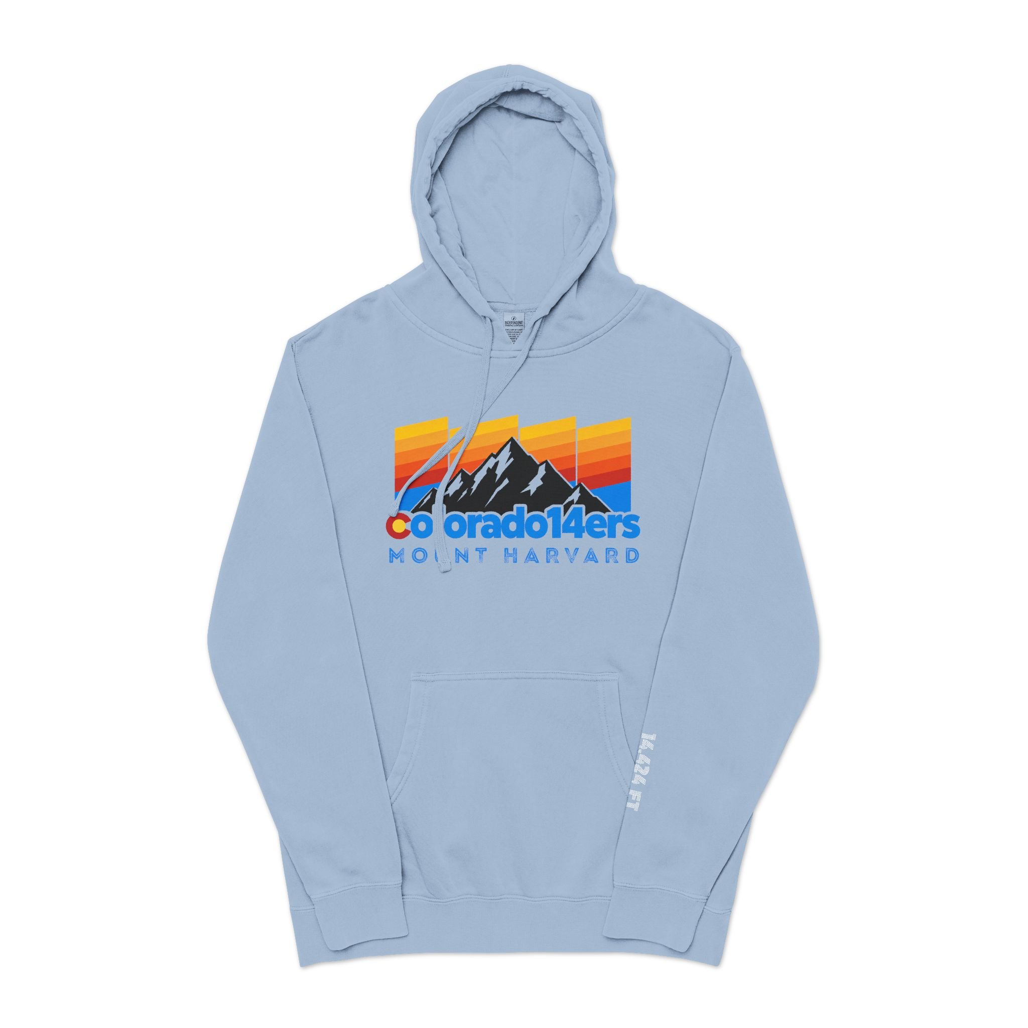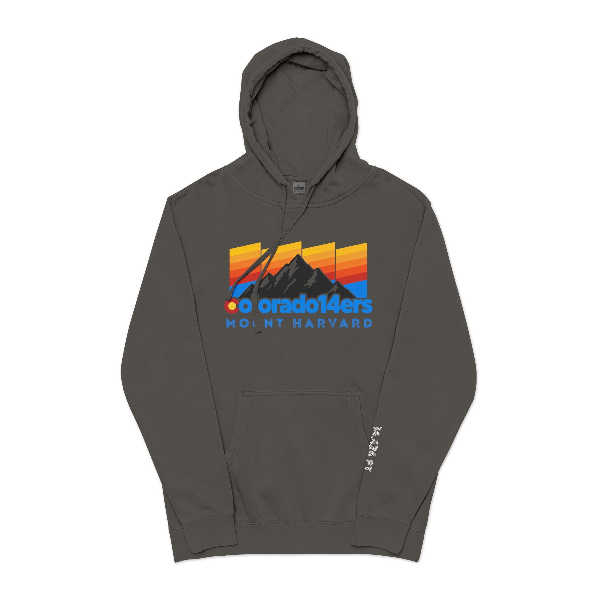 Celebrate your summit of a classic Collegiate Peaks 14er: Mount Harvard with this ultra-soft pigment-dyed hoodie that feels lived-in from the first wear. Lightweight yet substantial, the jersey-lined hood, pouch pocket, and ribbed cuffs create a cozy, familiar silhouette that layers easily over tees or under a jacket. Wear it on trailheads, coffee stops, or late-night drives when you want comfort that also tells a story.