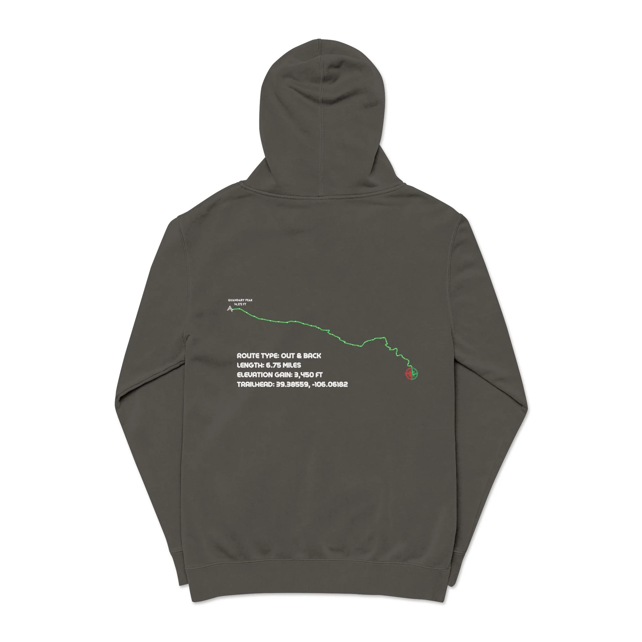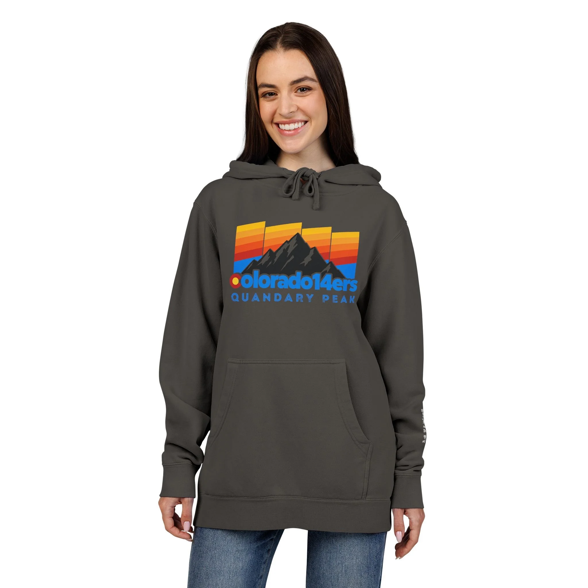 Celebrate your summit of a classic Summit County 14er: Quandary Peak with this ultra-soft pigment-dyed hoodie that feels lived-in from the first wear. Lightweight yet substantial, the jersey-lined hood, pouch pocket, and ribbed cuffs create a cozy, familiar silhouette that layers easily over tees or under a jacket. Wear it on trailheads, coffee stops, or late-night drives when you want comfort that also tells a story.